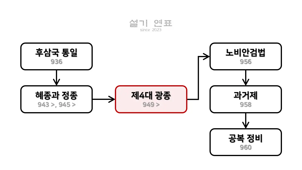 - 광종은 후주 출신의 쌍기를 중용하였고,