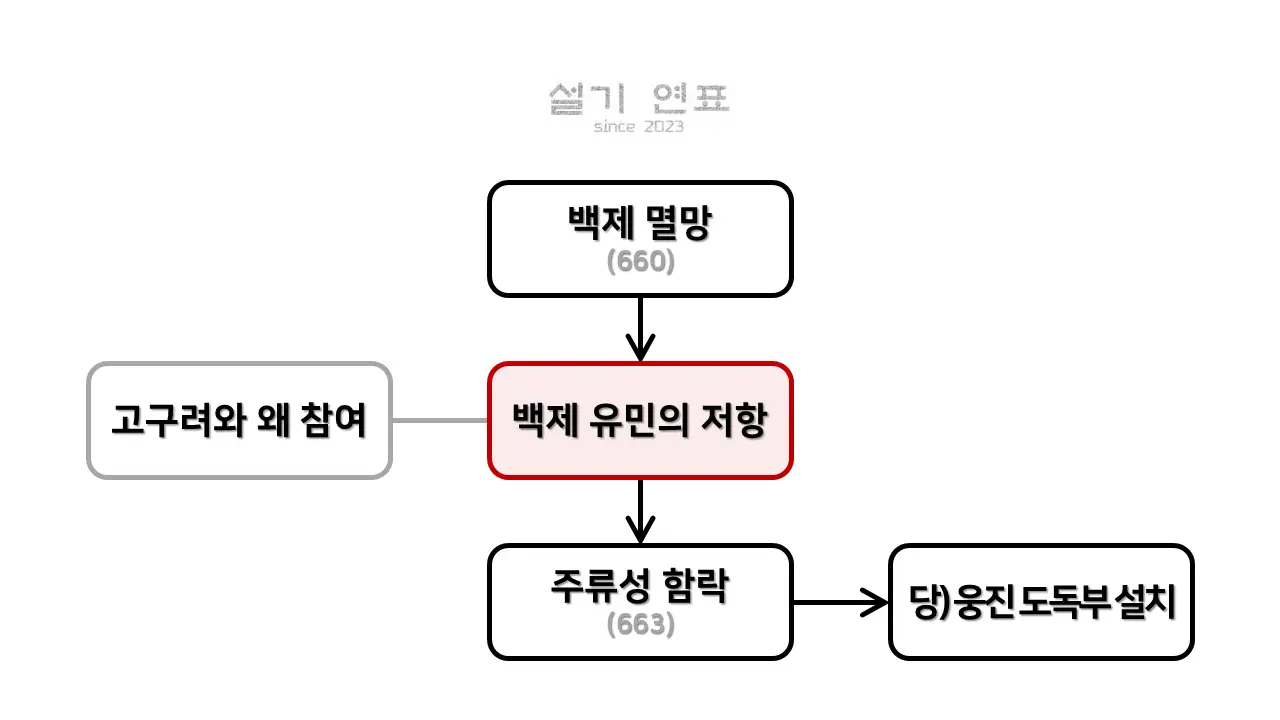 ↘ 당은 백제 지역의 지배력을 회복했지만, 그