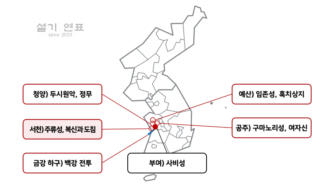 - 임존성 (지금의 충남 예산, 사적 제90호)의 흑치상지와 주류성(지금의 충남