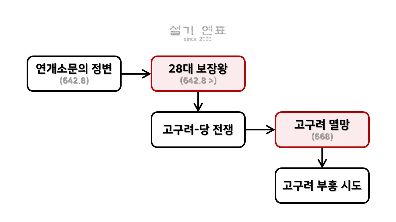 당 고종이 황제에 올라 고구려 정복 정책을 밀어붙임.